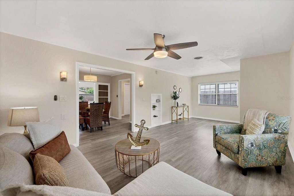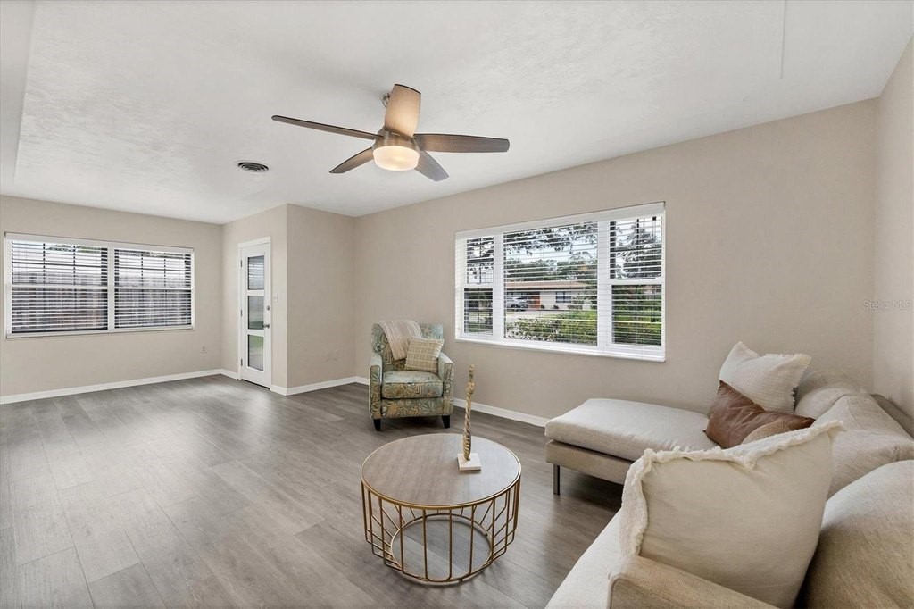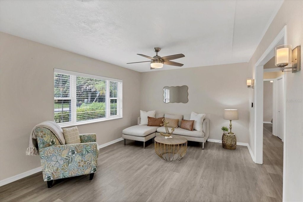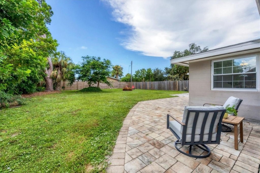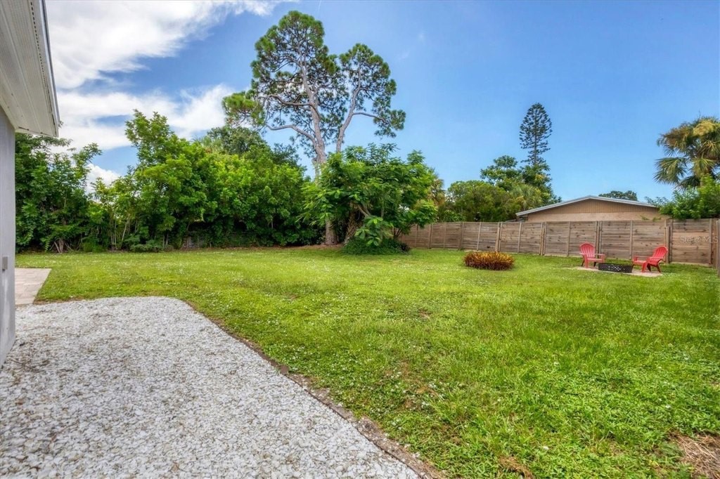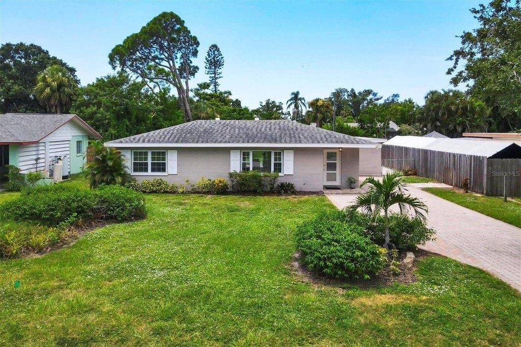 Welcome to this Mid-Century gem in the heart of Sarasota. This beautifully remodeled 3-bedroom, 2-bathroom home is situated on a spacious quarter-acre lot. Whether you’re looking for a personal residence, seasonal getaway, or rental opportunity, this fully fenced property offers flexibility and functionality in a prime Sarasota location. As you enter you will be greeted by an abundance of natural light and luxury vinyl plank flooring throughout. The spacious living room flows into a formal dining area and a large open kitchen with newer appliances, wood cabinets and granite counter tops. A separate den provides additional space for a home office or cozy retreat overlooking your large, private backyard. Two bedrooms and a full bath sit on one side of the home, while the opposite side features a private suite with its own entrance, bathroom, and AC — ideal as a primary bedroom, mother-in-law suite, or income-producing rental. Upgrades include newer windows, a new roof in 2018, city water (a rare bonus in this neighborhood), upgraded bathrooms, upgraded lighting and ceiling fans and new interior paint. This home is located in a highly-desired school district and close proximity to downtown Sarasota, shopping, restaurants, the art district, and just a few homes away from a walking trail leading to Southgate Mall.