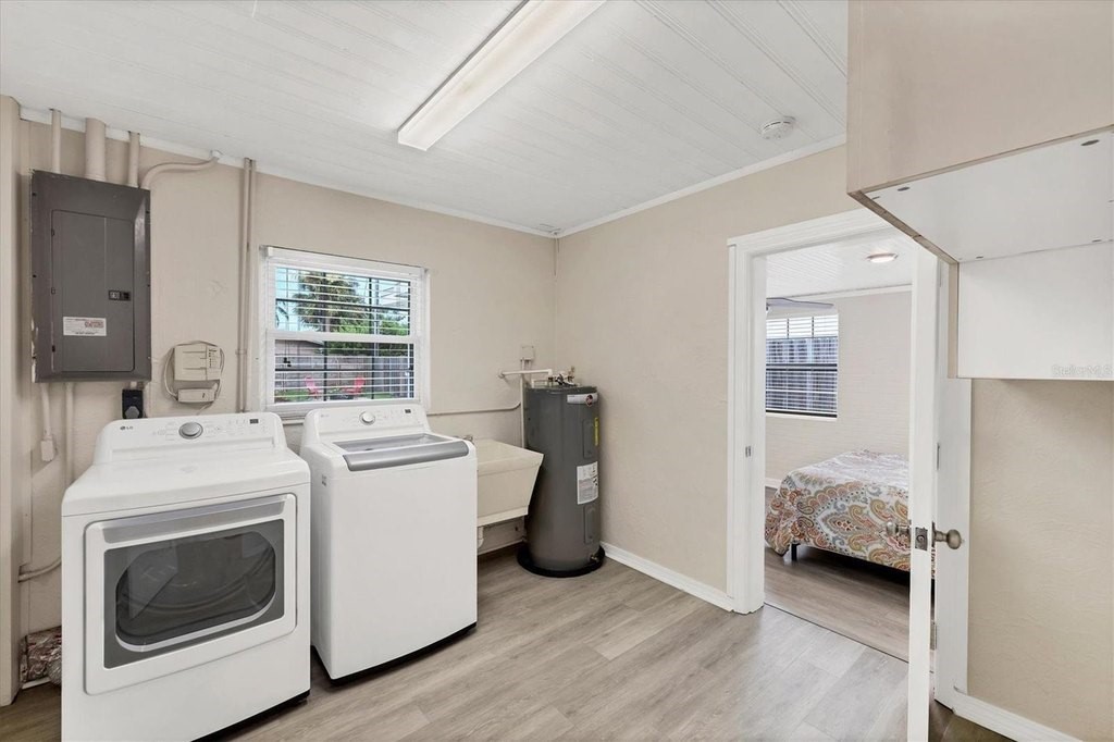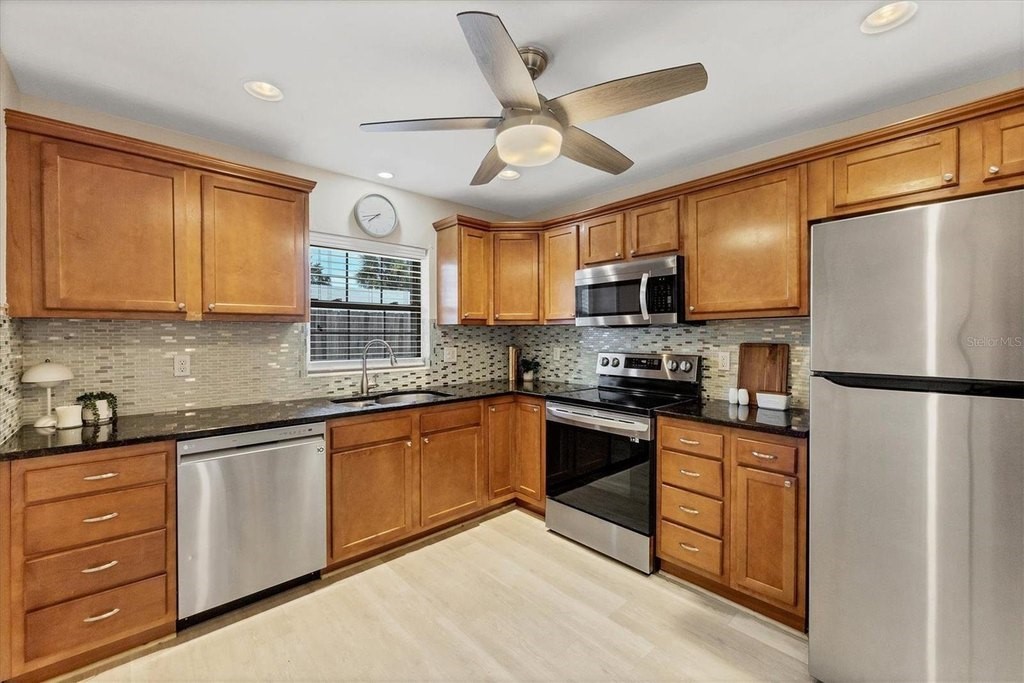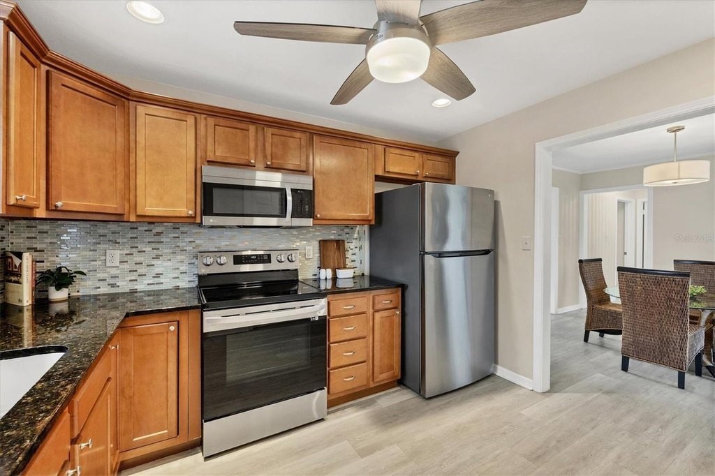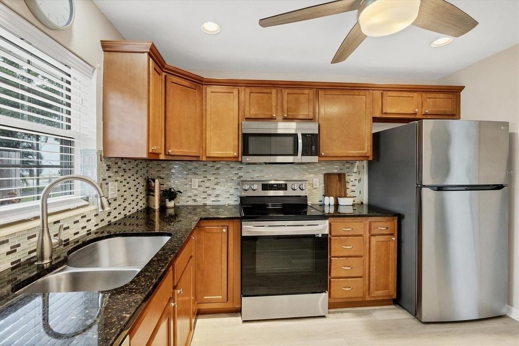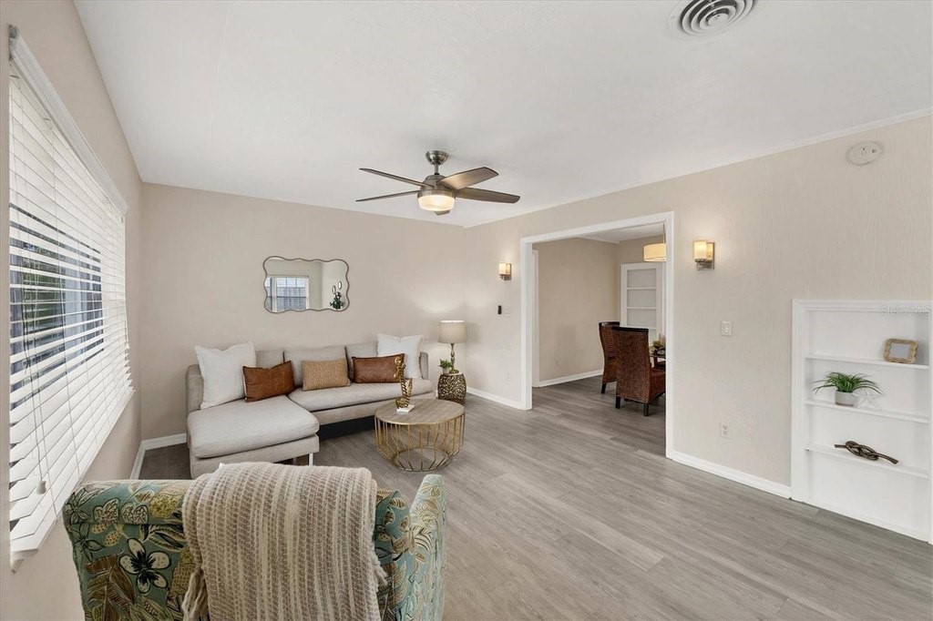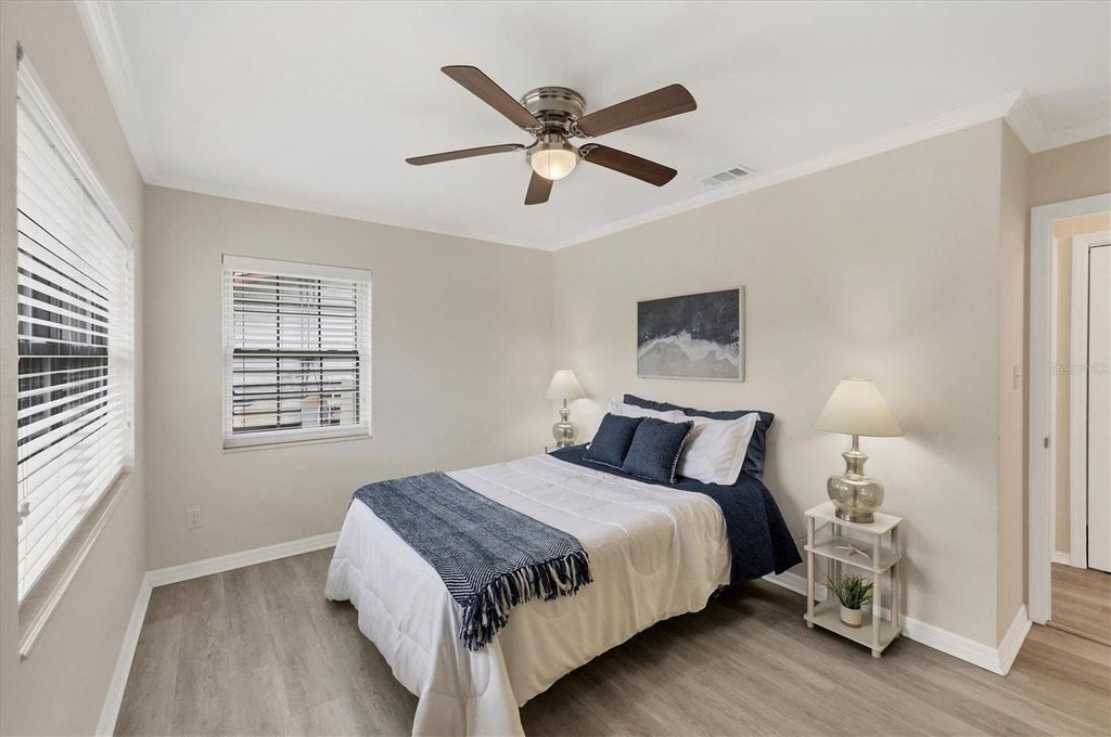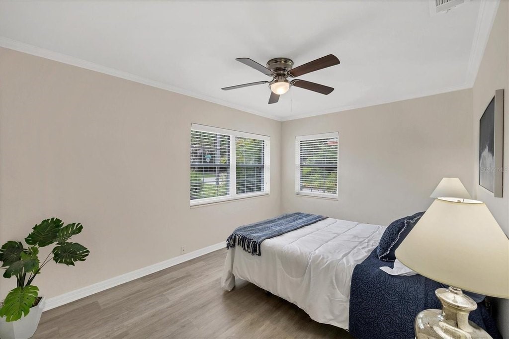 Welcome to this Mid-Century gem in the heart of Sarasota. This beautifully remodeled 3-bedroom, 2-bathroom home is situated on a spacious quarter-acre lot. Whether you’re looking for a personal residence, seasonal getaway, or rental opportunity, this fully fenced property offers flexibility and functionality in a prime Sarasota location. As you enter you will be greeted by an abundance of natural light and luxury vinyl plank flooring throughout. The spacious living room flows into a formal dining area and a large open kitchen with newer appliances, wood cabinets and granite counter tops. A separate den provides additional space for a home office or cozy retreat overlooking your large, private backyard. Two bedrooms and a full bath sit on one side of the home, while the opposite side features a private suite with its own entrance, bathroom, and AC — ideal as a primary bedroom, mother-in-law suite, or income-producing rental. Upgrades include newer windows, a new roof in 2018, city water (a rare bonus in this neighborhood), upgraded bathrooms, upgraded lighting and ceiling fans and new interior paint. This home is located in a highly-desired school district and close proximity to downtown Sarasota, shopping, restaurants, the art district, and just a few homes away from a walking trail leading to Southgate Mall.